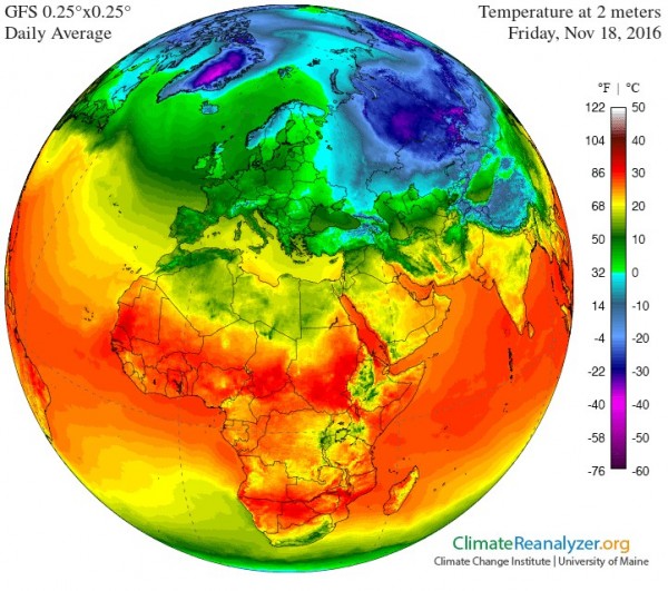 (polar night),不會受到太陽光日照,氣溫照理說不會太高。然而北極圈17日的氣溫
