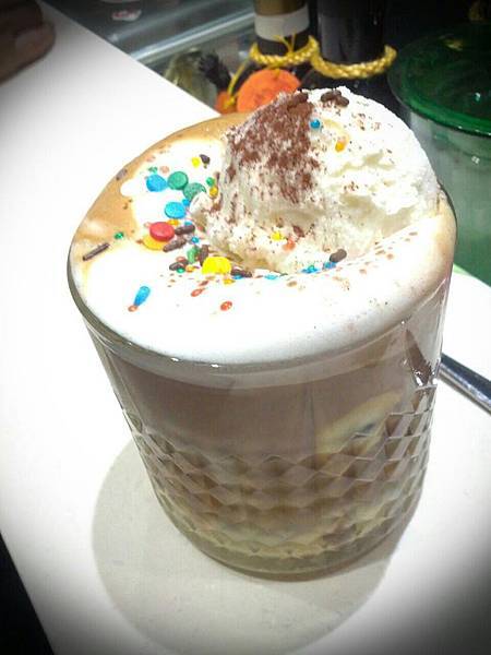 這是為一位朋友慶生的特調咖啡,叫Nick。巧克力口味,也算是五月的推薦創意咖啡。來